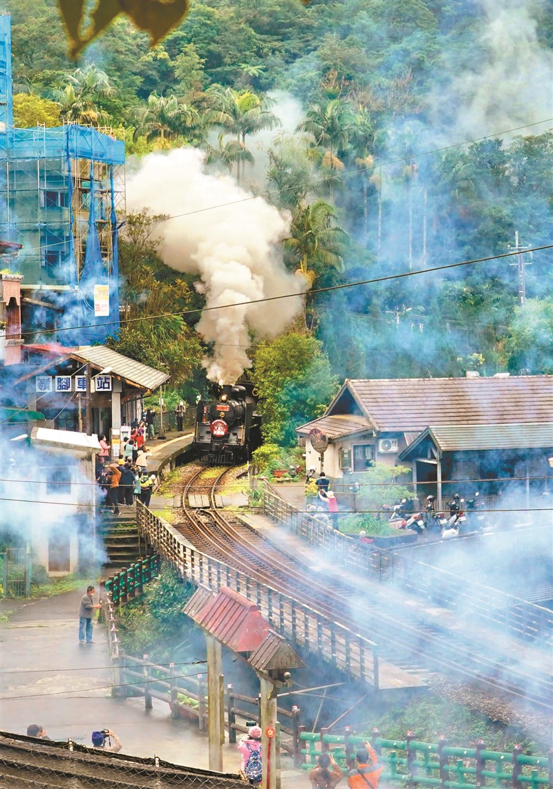 【本報新北訊】睽違10年未進平溪線的蒸汽火車,昨天再度駛進瑞芳、猴硐、十分等地,沿途吸引大批民眾搶拍,尤其瑞芳火車站人潮擠爆。十分寮成安宮昨辦理媽祖繞境,包下台鐵CK124蒸汽火車,搭載媽祖及信徒在平溪線遶境,也喚起大家的記憶。