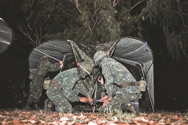 新制教召將選擇三個營實施「全程野宿」。圖為陸軍部隊在野外搭設迷彩帳棚。圖╱陸軍臉書粉專