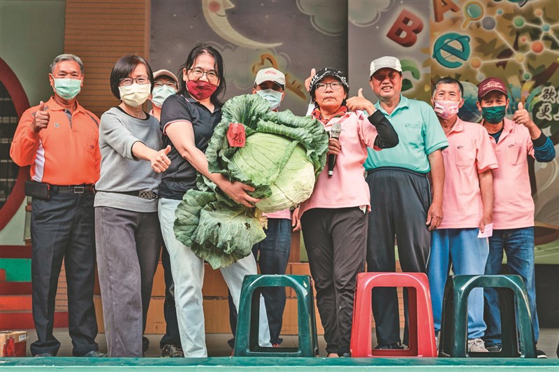 這顆超大高麗菜種了五個多月,是在眾多學員呵護下長大收成,所以取名為「幸福」,希望在新的一年將幸福許給民眾,也希望疫情快走,大家都可以幸福快樂。