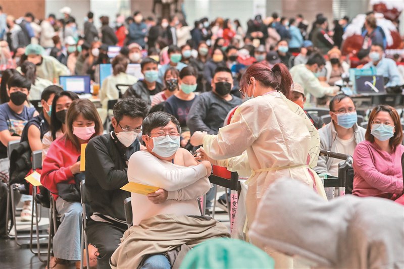 國內本土新冠疫情升溫,台北車站接種站打氣大幅提升。圖/中央社