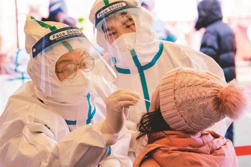 天津市本土Omicron疫情嚴峻,居民10日接受新冠病毒篩檢。圖/法新社