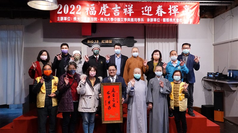 為迎接農曆新年到來,佛光山佛光大學中文系博士班與佛光山蘭陽別院,攜手舉辦書法春聯分享會。圖/佛大提供