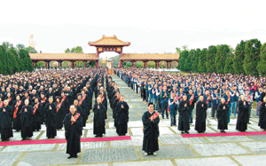 股市世界研討會會員、苗栗縣三德寺信眾、花蓮月光寺佛光人等近二千人參加朝山禮佛,其中苑裡高中二年級的蔡彬晨與祖父母、父母、伯、叔一家三代跪拜到成佛大道時,見到天空祥雲朵朵,深感不可思議。就讀幼稚園大班的蕭靖慧,三次跟隨父母親到佛光山朝山,小小年紀,禮佛有模有樣,令人讚歎。
