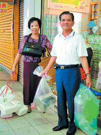 陳菊妹血壓偏高,二○○二年年底初做資源回收時,經常暈眩;回收不久,不但血壓回復正常,身體也愈來愈健康。她的同修范光橋被她的義行感動,於是中午也不休息,出門協助回收,每次都得回收兩大袋才肯回家。(人間社記者妙願攝)