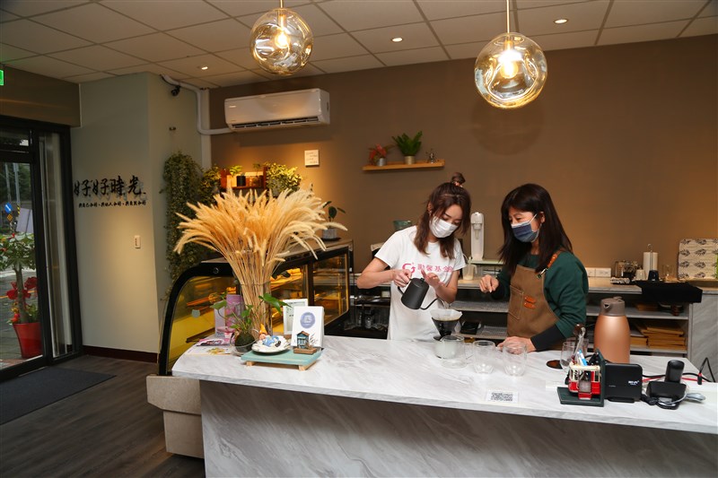 勵馨攜手「國家住宅及都市更新中心」打造公益咖啡館「好好時光」,蔡頤榛體驗手沖咖啡。圖/勵馨基金會提供