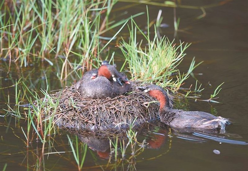 小鷿鷉的浮台巢,會隨潮水而升降。圖/嘉義林管處提供