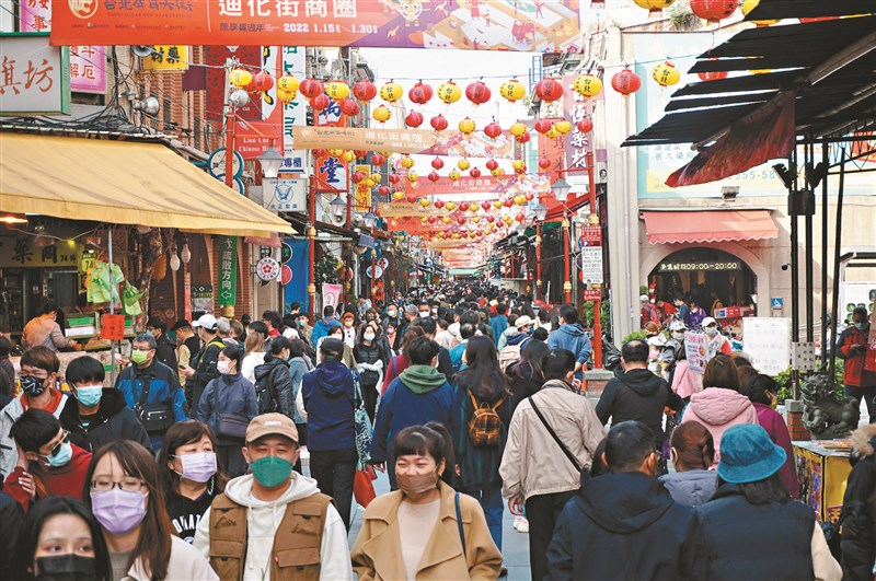 「二○二二台北年貨大街」昨日開跑,迪化商圈湧現人潮。圖/中央社