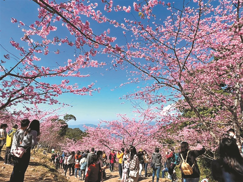 高雄市桃源區公所寶山里櫻花公園,吉野櫻及八重櫻目前已開八成。圖/中央社