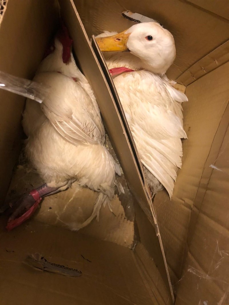 今年1月3日板橋殯儀館員工發現,館內牆角有紙箱放置1隻白鴨及1隻白雞,雞冠明顯被切割,箱子內有大片血漬,為做完法事被棄置雞鴨,殯葬處調閱監視器畫面確認為禮儀公司雇請工人所為,移請動保處處理。