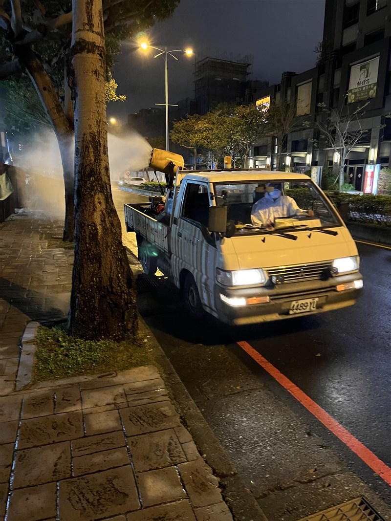 新竹縣衛生局晚間派員前往竹北消毒環境。圖╱巫鴻瑋