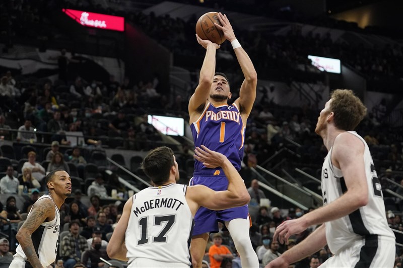 【記者張哲郢綜合外電報導】17日2度獲選單周最佳球員,美國職籃鳳凰城太陽射手布克(Devin Booker)在跟聖安東尼奧馬刺比賽就用身手證明自己,全場轟下本季新高48分,生涯第15場得分破40,追平太陽隊史紀錄,也幫太陽121:107後來居上擊敗馬刺,拿到4連勝。