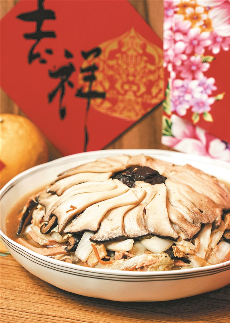 「澎派白菜烘」年菜擺盤豐盛喜氣,吃法可單吃、配飯吃,甚至直接當湯品嘗,也都極為美味。