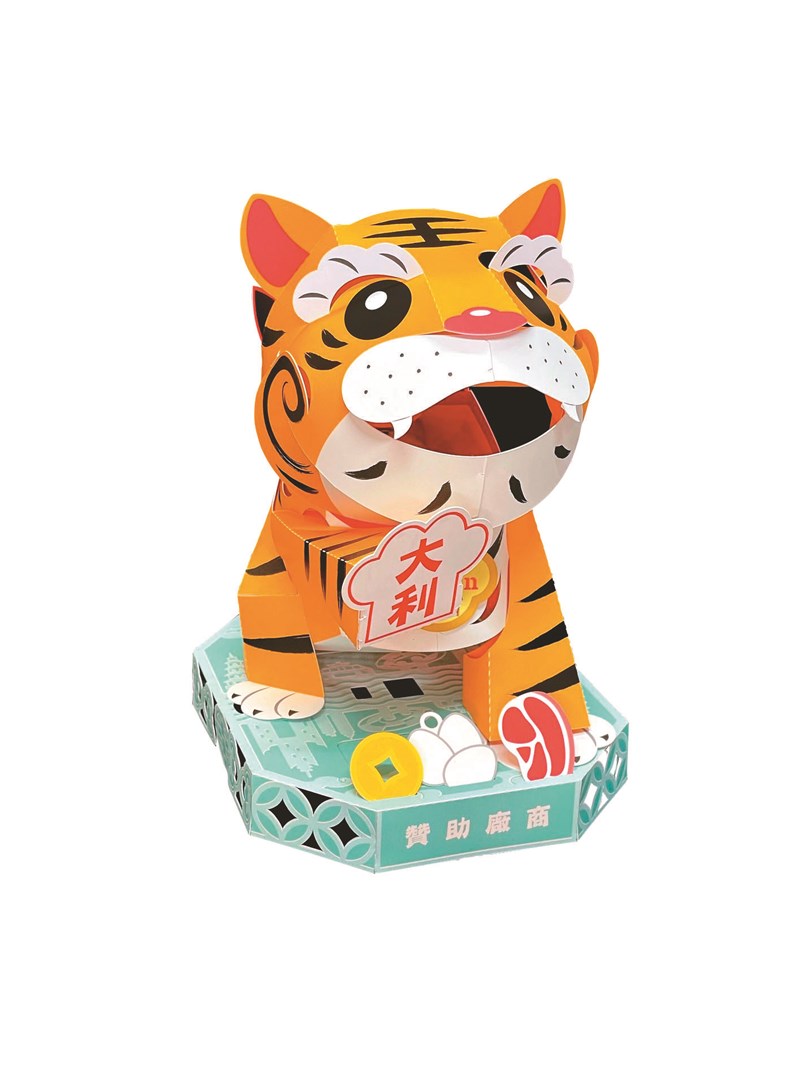 而最受小朋友喜愛的小提燈,今年命名為「大吉虎」,以民間信仰小朋友的守護神「虎爺」作Q版設計,並於虎掌上寫著「大吉」和「大利」,除可供小朋友提燈遊玩外,也可坐立於桌面上,做為祈求平安的虎爺公仔,保佑小朋友平安,期許疫病遠離。