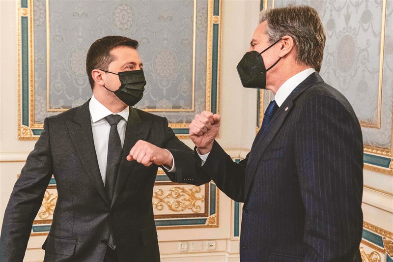 美國國務卿布林肯(右)十九日抵達基輔,會晤烏克蘭總統澤倫斯基。圖/法新社