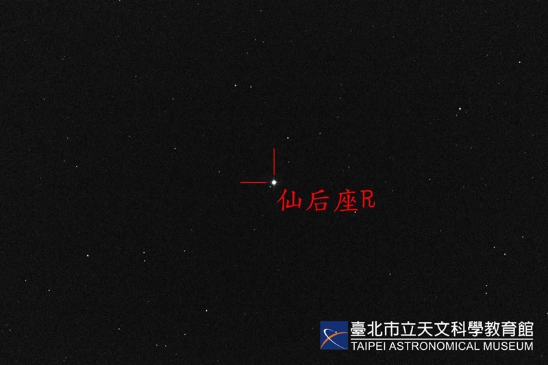 座落在指引北極星的仙后座中,是被稱為「仙后座R」的一顆脈動變星,將於1月24日達到最大亮度,預估將能以裸眼看見。圖/天文館提供