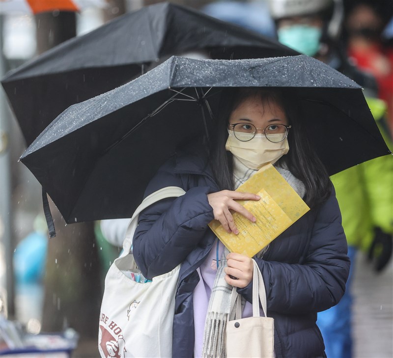 學測首日,考生撐傘赴考場。圖/中央社