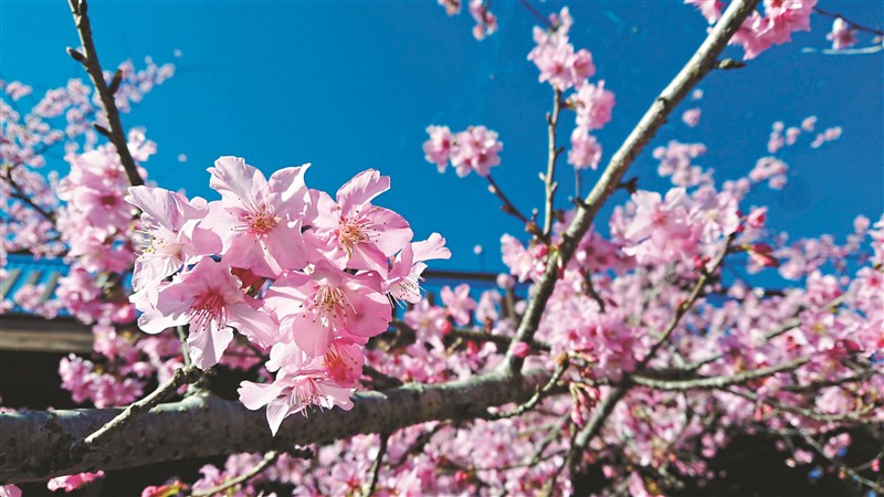 【記者江俊亮嘉義報導】二十四節氣「大寒」剛過,阿里山區卻已春意盎然,不僅桃花、李花盛開,河津櫻更是花團錦簇,美不勝收;尤其隙頂山區的河津櫻花況甚佳,還可以遠眺形狀如大象的「象山」,聽聽「五鬼鬧銅鐘」的傳奇。