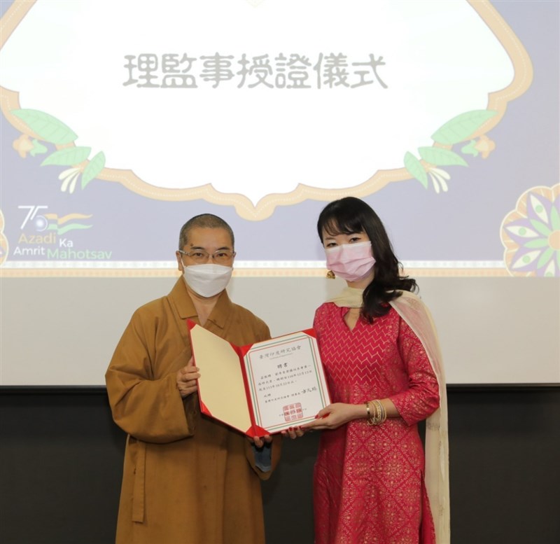 副理事長釋覺明法師頒發證書予協會研究員。圖/台灣印度研究協會提供