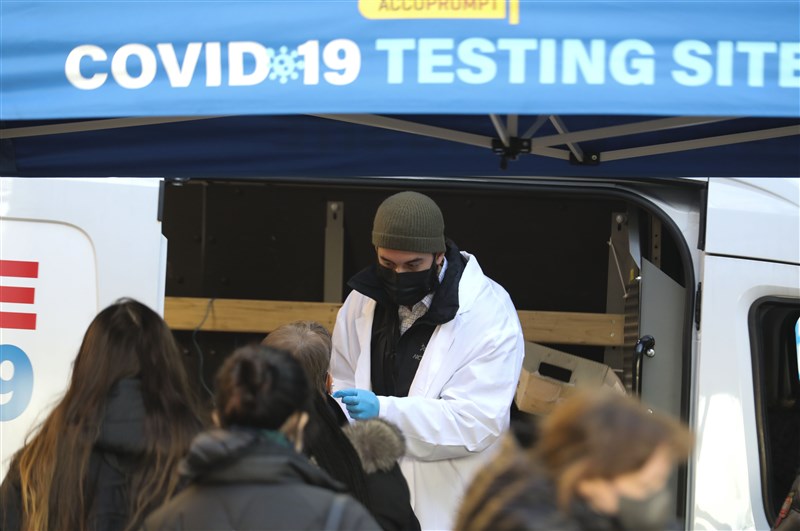 美國東北部的新冠病毒變異株Omicron疫情已達高峰,新增病例開始下滑。圖為紐約的新冠病毒篩檢站。圖╱新華社