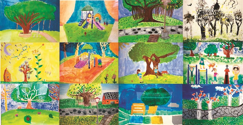 老師與義工帶孩子觀察每個角落,感受公園、森林對生活的重要性,「它不僅是一個綠色環境,還有調節空氣品質的功能,甚至運動或與家人朋友散心等情感連結的作用」,開啟孩子許多想像,不只描繪天氣、樹木、建築,也將和樂、輕鬆的氛圍放進去。畫作展示即日起至二月底,民眾到「台中市永興街三○一號三樓」都能欣賞孩子的純真畫作。