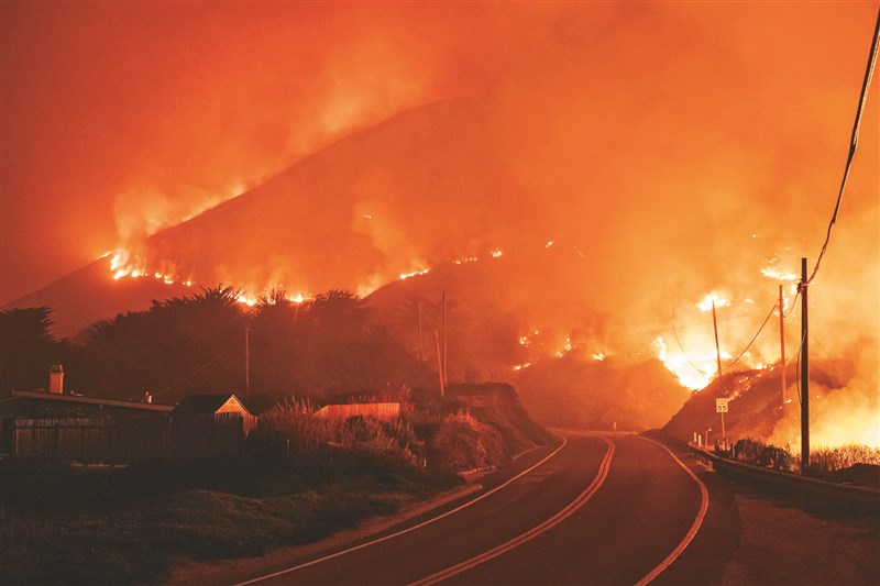美國加州北部風景優美的太平洋濱海公路,近日因野火關閉,著名的比克斯比溪大橋也受到威脅。這場被稱作「科羅拉多大火」的野火二十一日爆發,在公路靠海段燃燒了一段時間。圖/美聯社