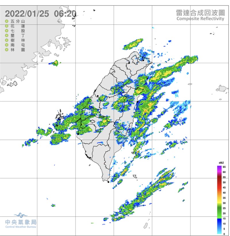 今受到東北風影響,北部、東半部有局部短暫雨,中部有零星飄雨的機率。圖╱氣象局提供