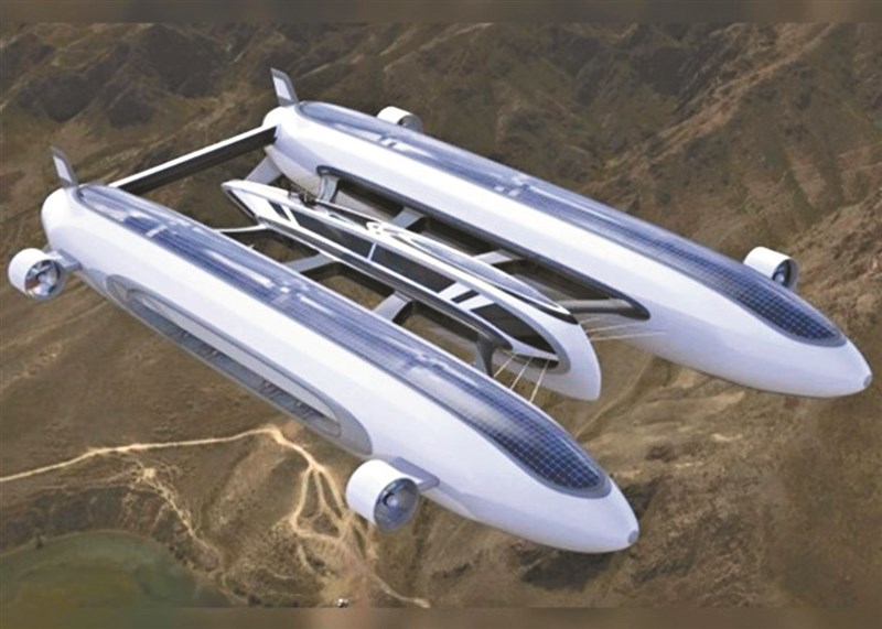 這款巨型雙體飛船長約150公尺,兩側各有一個充滿氦氣的氣缸,連接中央寬約10公尺的碳甲板主艙,加上其頂上的太陽電池板驅動。