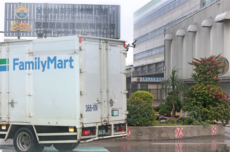 圖為全家物流車經過日翊文化行銷大門口。圖╱陳正興