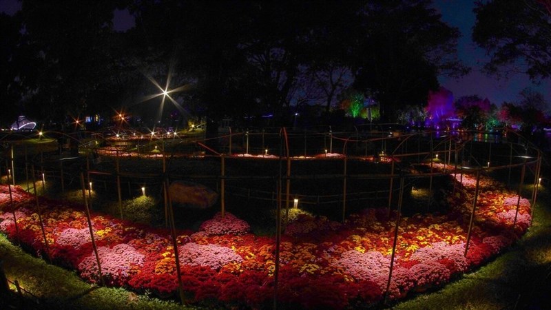 觀光局指出,受到民眾喜愛的「菊花夜行軍」百米花廊光譜作品,以超過百米長光照菊呈現燈海,於園區內蜿蜒流向湖畔的路徑,恰似一條農業人文記憶的月光流域,讓民眾每天來都可以看到菊花不一樣的生長姿態,體會光照的溫度與色彩的多樣性,感受「農作生命循環」生命力。