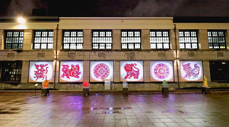 「虎虎哈嘻.大過虎年」展覽,夜晚還搭配熱鬧絢爛的光雕秀。圖/松山文創園區提供