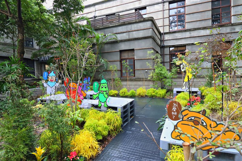 首度開放成為展區的辦公廳舍北向休憩區,則展出〈六寶嬉春〉,以漢聲六寶為主,重溫6、7年級生童年記憶。圖/松山文創園區提供首度開放成為展區的辦公廳舍北向休憩區,則展出〈六寶嬉春〉,以漢聲六寶為主,各自有不同的個性,「牛寶」有自信但卻霸道,「皮寶」調皮卻好奇,「瓜寶」迷糊卻不計較,「漢寶」愛吃貪心願意動腦,「蕉寶」害羞卻細心,「狗寶」容易緊張卻有同情心,現場並放置人形立牌供拍照打卡,讓6、7年級生重溫童年記憶。