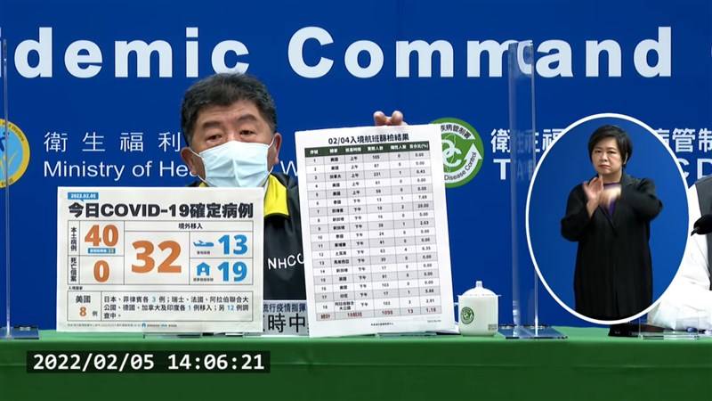 新冠肺炎5日增40例本土、32例境外移入,陳時中表示社區威脅未擴大。圖/擷取自衛福部直播