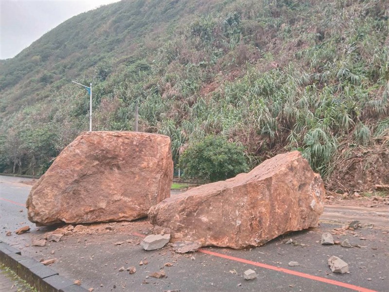 基隆市外木山海岸湖海路昨天發生落石,最大塊落石重達四十公噸。圖/邱瑞杰