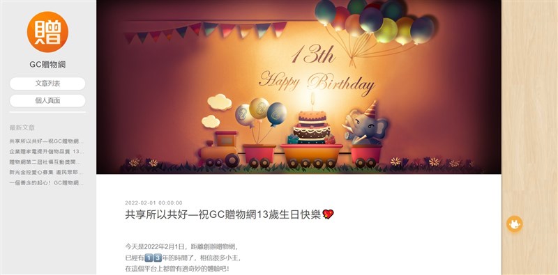 贈物網2月1日表示邁入13周年,也分享更換LOGO設計與更多感人故事。圖/擷取自GC贈物網官網