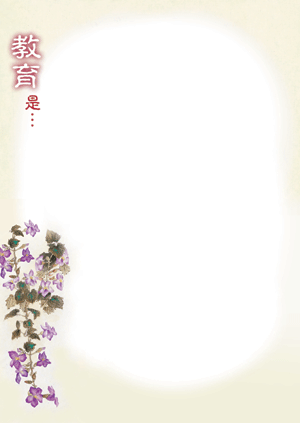 教育是「玉不琢,不成器;人不學,不知道」的利器。它似夏雨滋潤般,開導無知有情,陶養良好品德;它也如春風和暖地,感化無明眾生,回歸嶄新人生。(永康 李世雄)