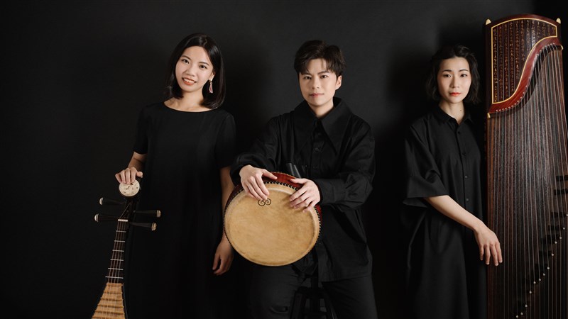 CUBE BAND琵琶、古箏與打擊的特殊三重奏編制,是台灣唯一的器樂組合,左起為琵琶演奏家蘇筠涵、打擊演奏家方馨、古箏演奏家吳妍萱。圖/捌號會所提供、陳宥中攝影