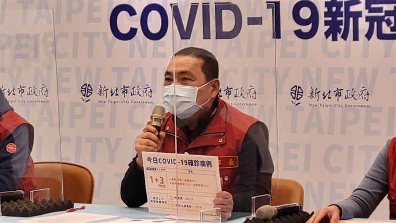 新北市長侯友宜今日下午召開記者會表示,新北今日新增4例確診,一個為本土個案19346,其他三位同住家人居隔採檢陽性,已匡列25人,目前皆無症狀。圖/江婉儀