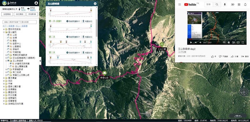【記者羅智華南投報導】身為台灣海拔最高的的玉山,不只是東北亞第一高峰,每年更吸引數以萬計民眾造訪,為讓山林愛好者在防疫期間,也能透過網路進行一場「虛擬線上玉山旅行」。玉山國家公園管理處將歷年來航空攝影影像所建置的3D圖台,於近期改版上線,還新增多種「主題地圖」,讓民眾可一覽多樣化的玉山之美。