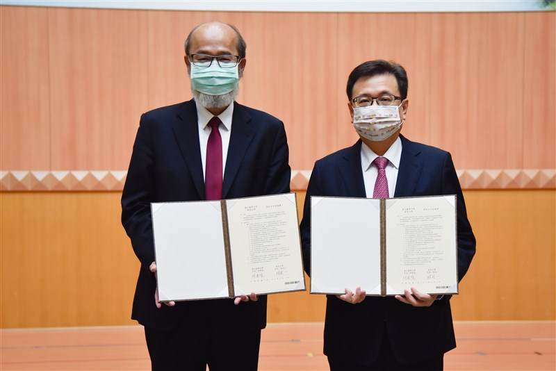 台北醫學大學林建煌校長(右)與華梵大學林從一校長簽署學術合作協議。圖/華梵大學提供