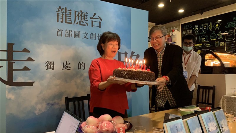 龍應台(左)2月13日將過70歲生日,時報出版社今在新書發表會上幫她慶生。圖/記者曹麗蕙