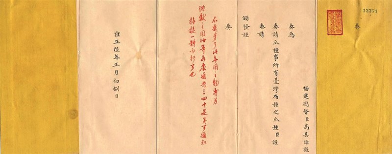 雍正年間,福建總督高其倬奏摺,奏請頒發台灣布種瓜種摺。圖/取自故宮臉書