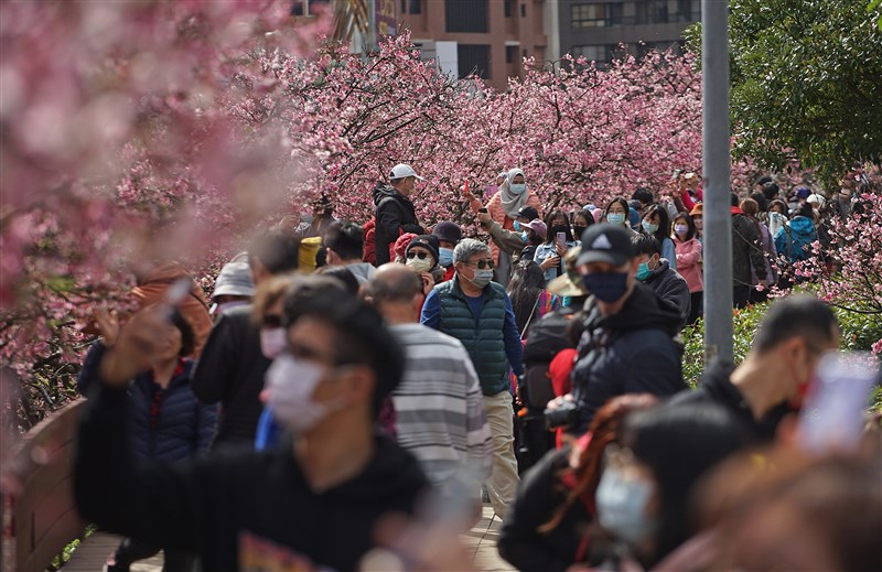 春節連假,民眾趁太陽露臉出遊賞花。圖╱資料照片
