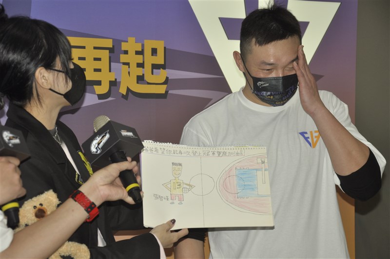 【記者張哲郢台北報導】過往SBL超級籃球聯賽名將張智峰,今天正式加盟T1聯盟桃園雲豹,身為藝人的老婆嚴立婷驚喜現身,送上兒子親筆畫的祝福,張智峰也感謝老婆的成全,讓他可以重回球場。