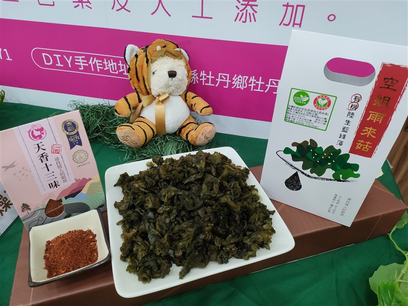 屏東有機雨來茹農丁采綸,新研製的天香十三味調味料(左下),獲國際大獎。圖/潘欣中