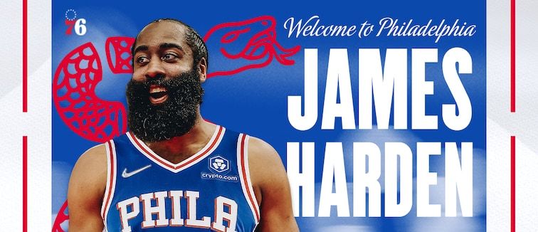 哈登在76人的隊友敞開雙手歡迎他的到來。圖/取自76人官網