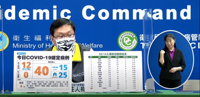 境外移入個案為18例男性、22例女性,年齡介於未滿10歲至60多歲,分別美國(9例)、菲律賓(4例)、澳大利亞(3例)、烏克蘭及日本(各2例)、義大利、柬埔寨、瑞典、芬蘭、波蘭、加拿大、南非、新加坡、蒙古、西班牙、寮國、韓國及墨西哥(各1例)移入;另7例調查中。入境日介於今(2022)年1月12日至2月12日。