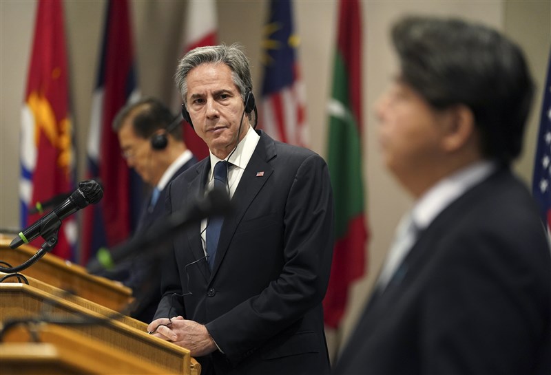 美國國務卿布林肯(Antony Blinken)、日本外務大臣林芳正與韓國外交部長鄭義溶在檀香山會晤;三國外長表示,平壤必須「停止其非法活動,轉而進行對話」。