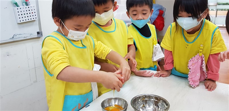 八里幼兒園李淑萍園長說,幼兒園老師們結合幼兒園生態耕作課程,規畫與大埤頂社區長輩分享手作餅乾的活動,帶幼兒運用自己種植的香草,製作好吃的香草點心送給爺爺奶奶們,課程中引導孩子學習觀察、探究、分享、關懷,也加深幼兒與在地社區的關係與認同。