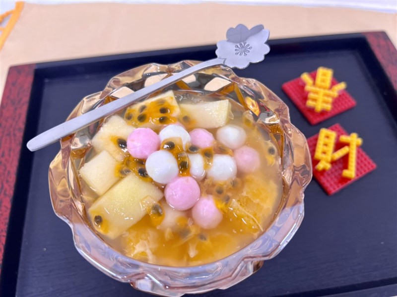 「果香玉露湯圓」使用蘋果、柳丁來增加色彩外,還有維生素B、C等營養素。圖/聯醫仁愛院區