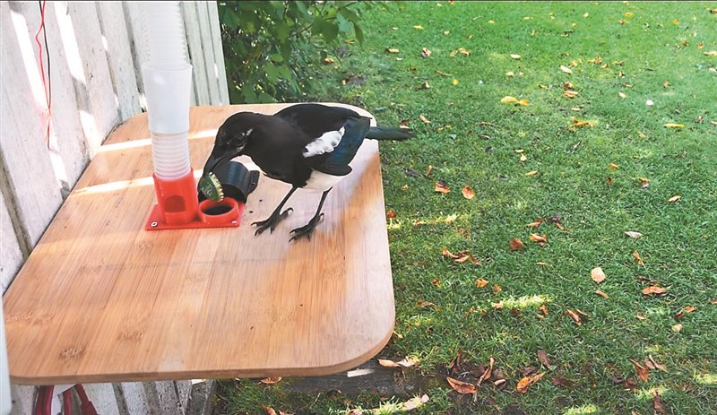 【本報綜合外電報導】瑞典一名工程師福斯伯格(Hans Forsberg),發現花園裡一對野生喜鵲,解開擺置在戶外複雜的燈罩鎖後,會尋找裡面的蠟燭。他因此打造器材,逐步訓練喜鵲撿垃圾。